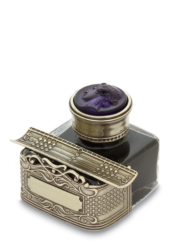 Encrier Vivaldi CAL60 en bronze avec un camée en pâte de verre décorant le capuchon, capacité de l'encrier 50ml.